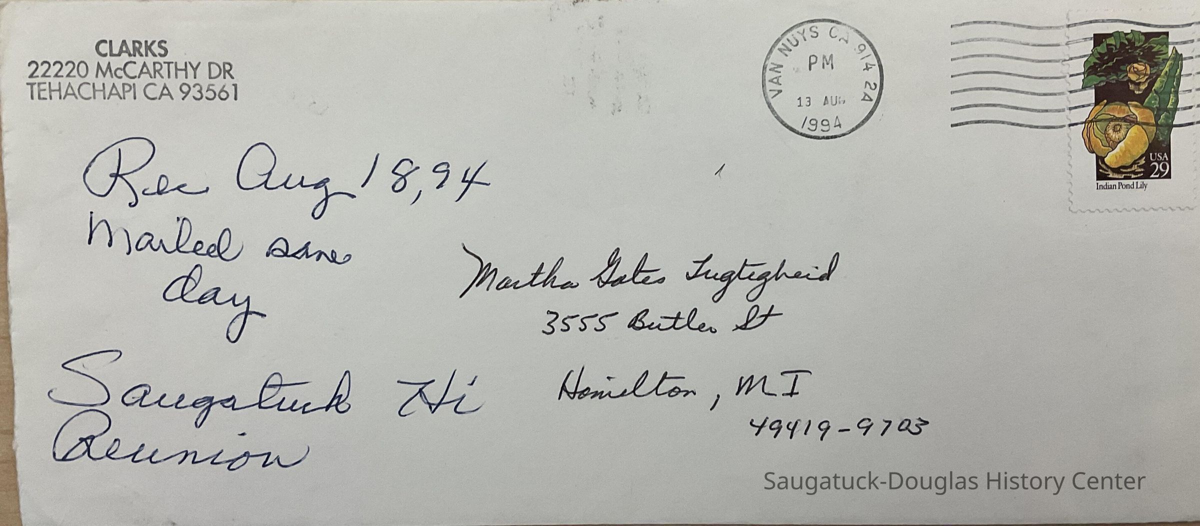 Notes: Invitation was written by Margaret Sessions Clark and sent to Martha Gates Lughtigheid Aug. 13, 1994 Status: OK Status By: Mary Voss Status Date: 2011-01-17