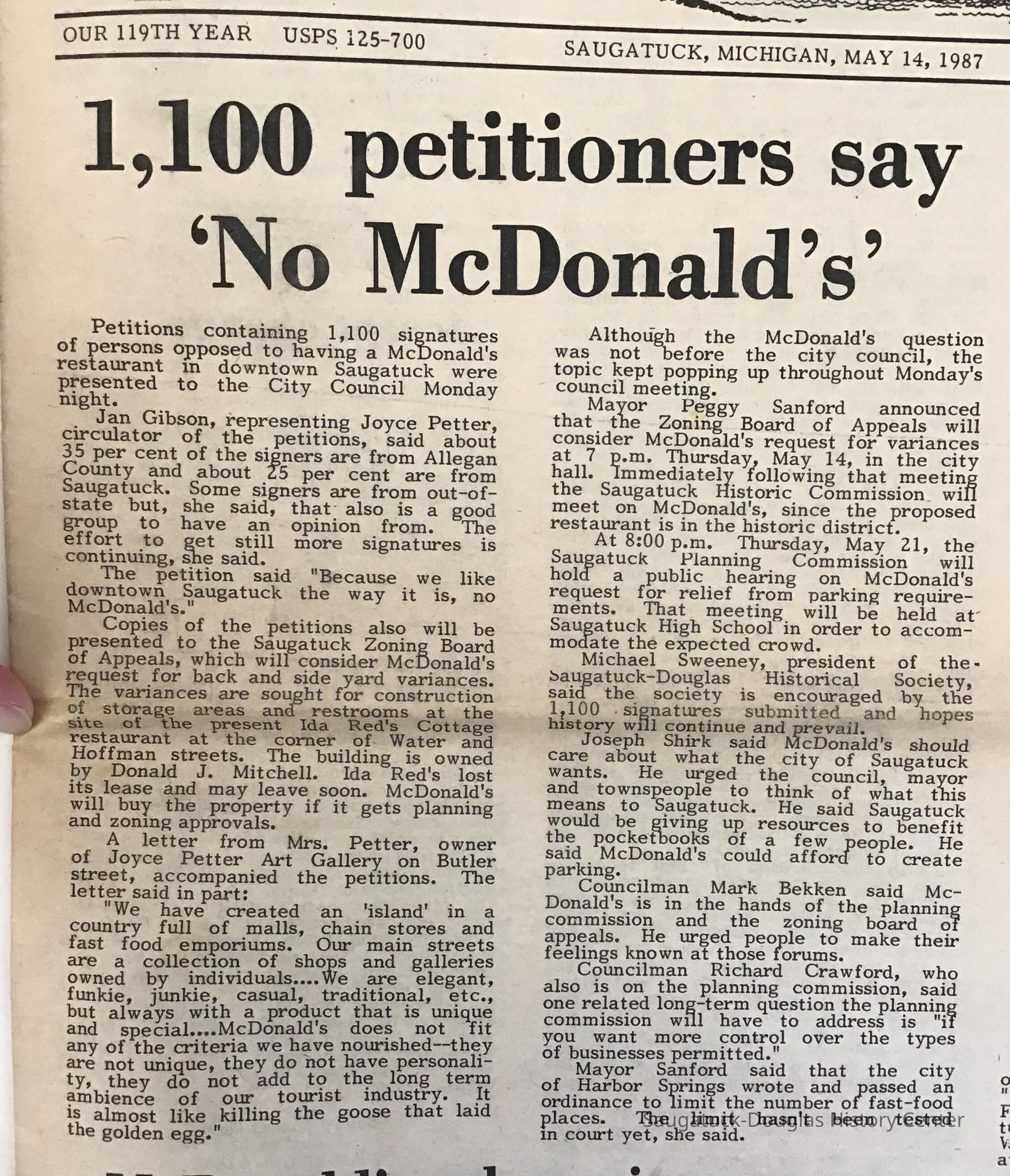 Newspaper, Commercial Record article about the 1,100 signatures turned in to the City Council against the McDonalds Restaurant.