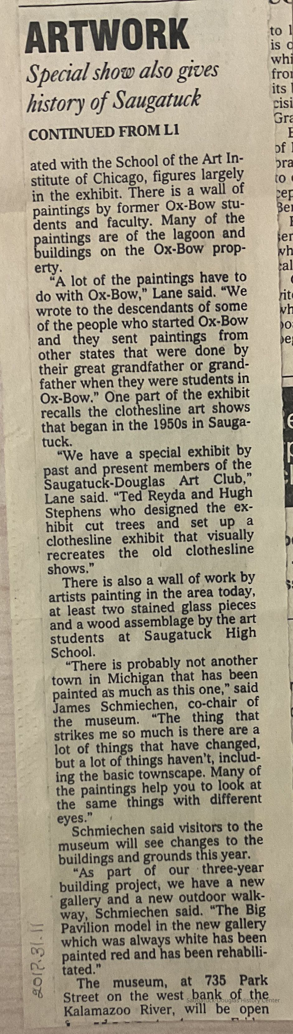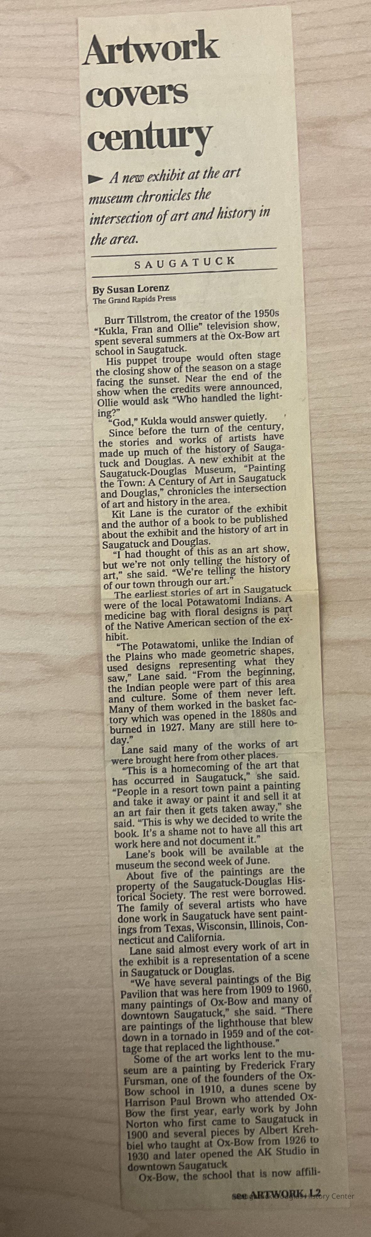 1997 newspaper article from the Grand Rapids Press about the "Painting the Town Exhibit at the Pump House Museum.
