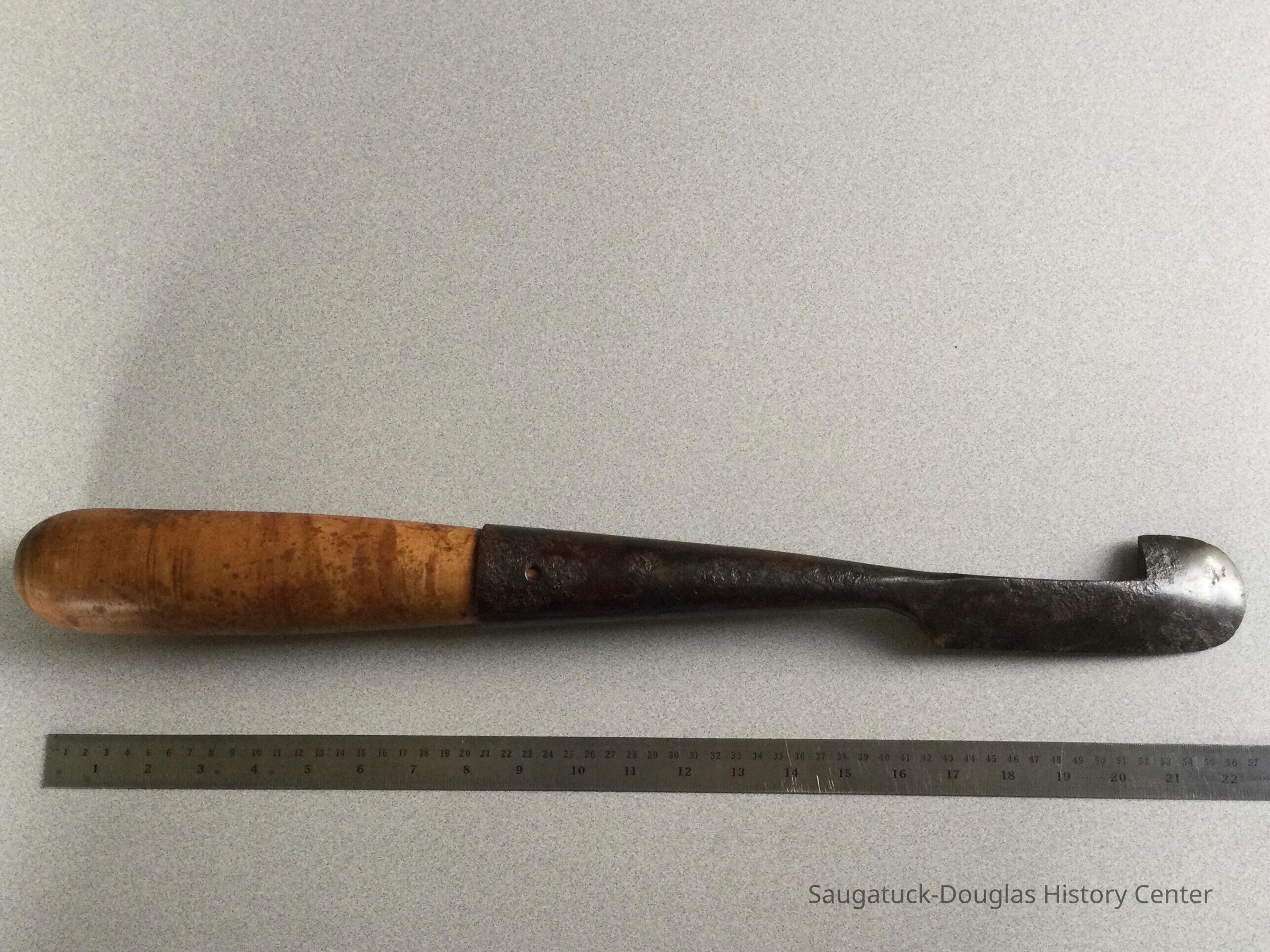 The bark spud was used to debark the log before it went to the sawmill. The bark usually contained contaminants that would dull the saw blades.