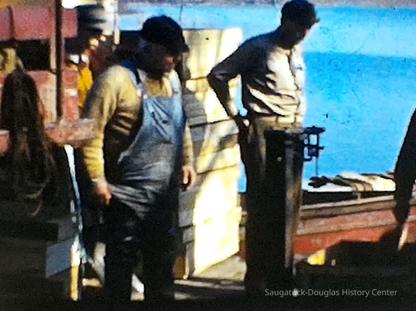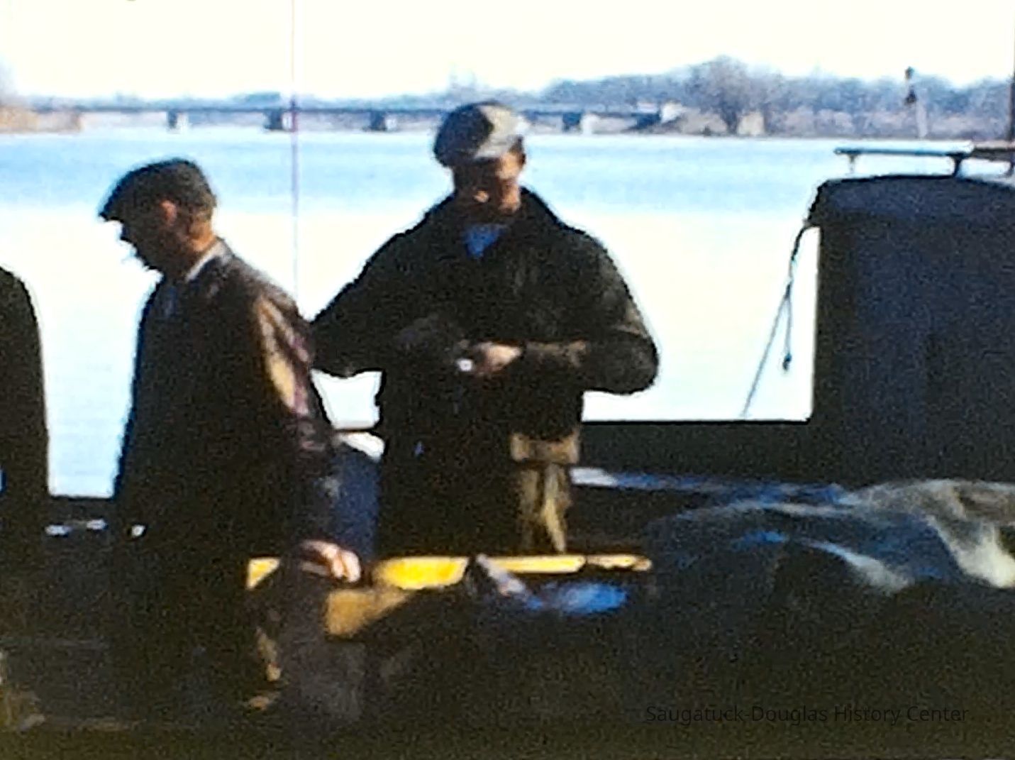 Silent, color home movie created by the Cynthia Sorensen family. Segment one is one minute of commercial fishermen at work in Saugatuck. The Blue Star Highway bridge is visible in the background as the fishermen pack and weigh a catch of carp. Segment two is the entire 16-minute movie that includes a trip to Oval Beach, to Niagara Falls, Mackinac Island and out West.