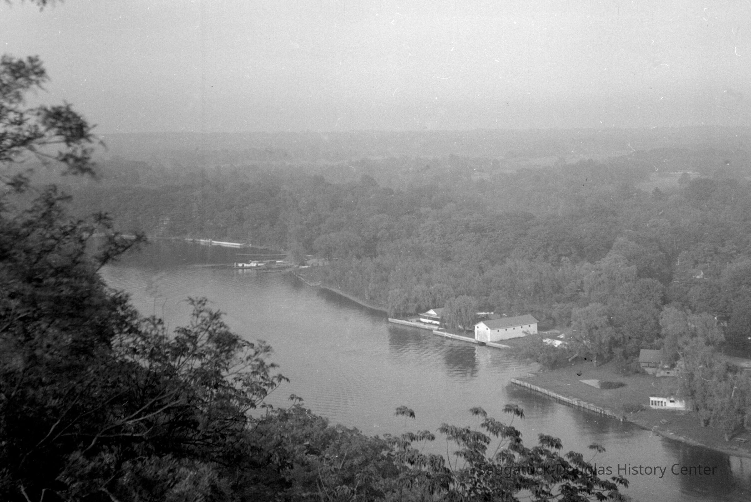 Simmons 003 Mt. Baldhead Gap Filler Radar Annex and views from Mt. Baldhead Index text: 3 7/8 bw Saugatuck - Baldhead Radar, View from Baldhead Since the radar has no dome the image is from between 1958 and 1963 From photographic negatives created by William R. Simmons, editor of the Commercial Record newspaper between 1941 and 1961. More information may be in the 2001 SDHS book "Off the Record" Kit's notes: "003 Radar, view from Baldhead – radar installed in 1956 – part of Aircraft Control and Warning system, Saugatuck Gap Giller Annex PIN 5521. Men stationed there for about 8 years. Dome installed in 1964. Deactivated in 1968. Closeup"