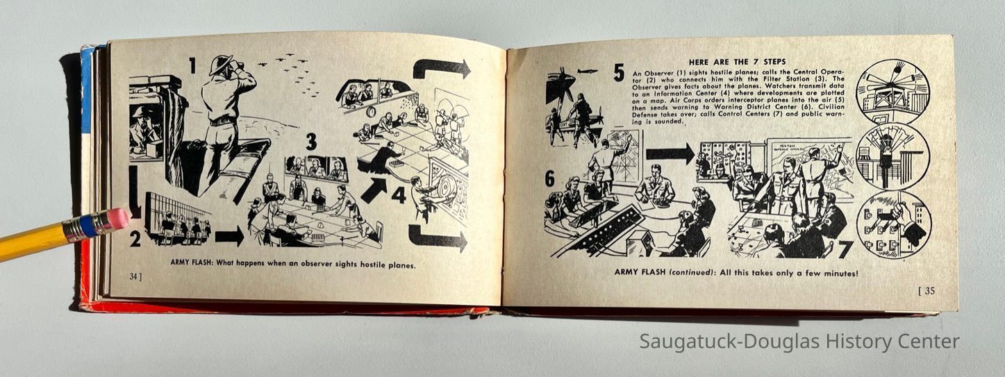 Published in 1942, the publication educated the home front in the midst of World War II. After the war, the enemy spotter responsibilities were taken over by radar systems like the one atop Mt. Baldhead.