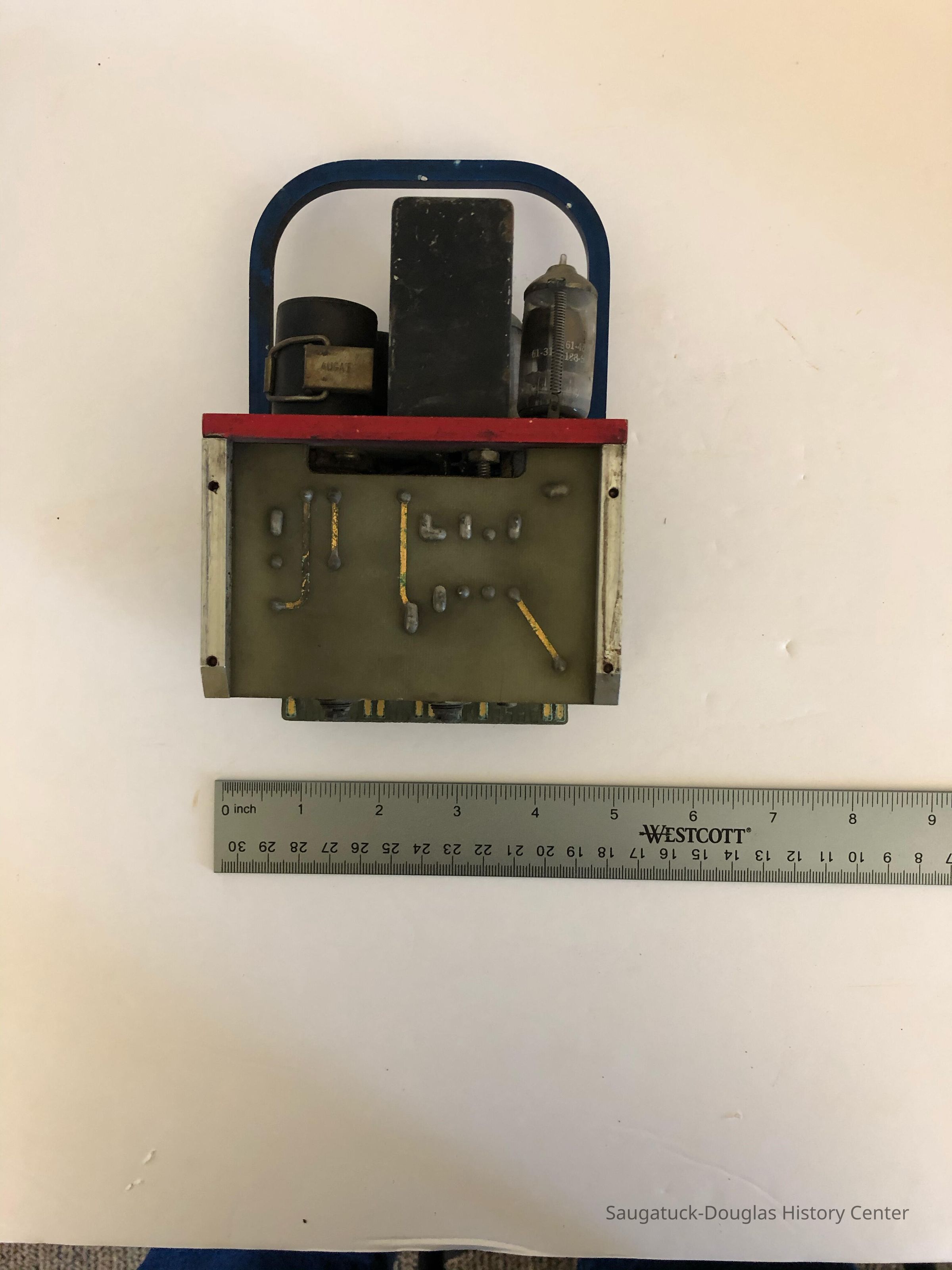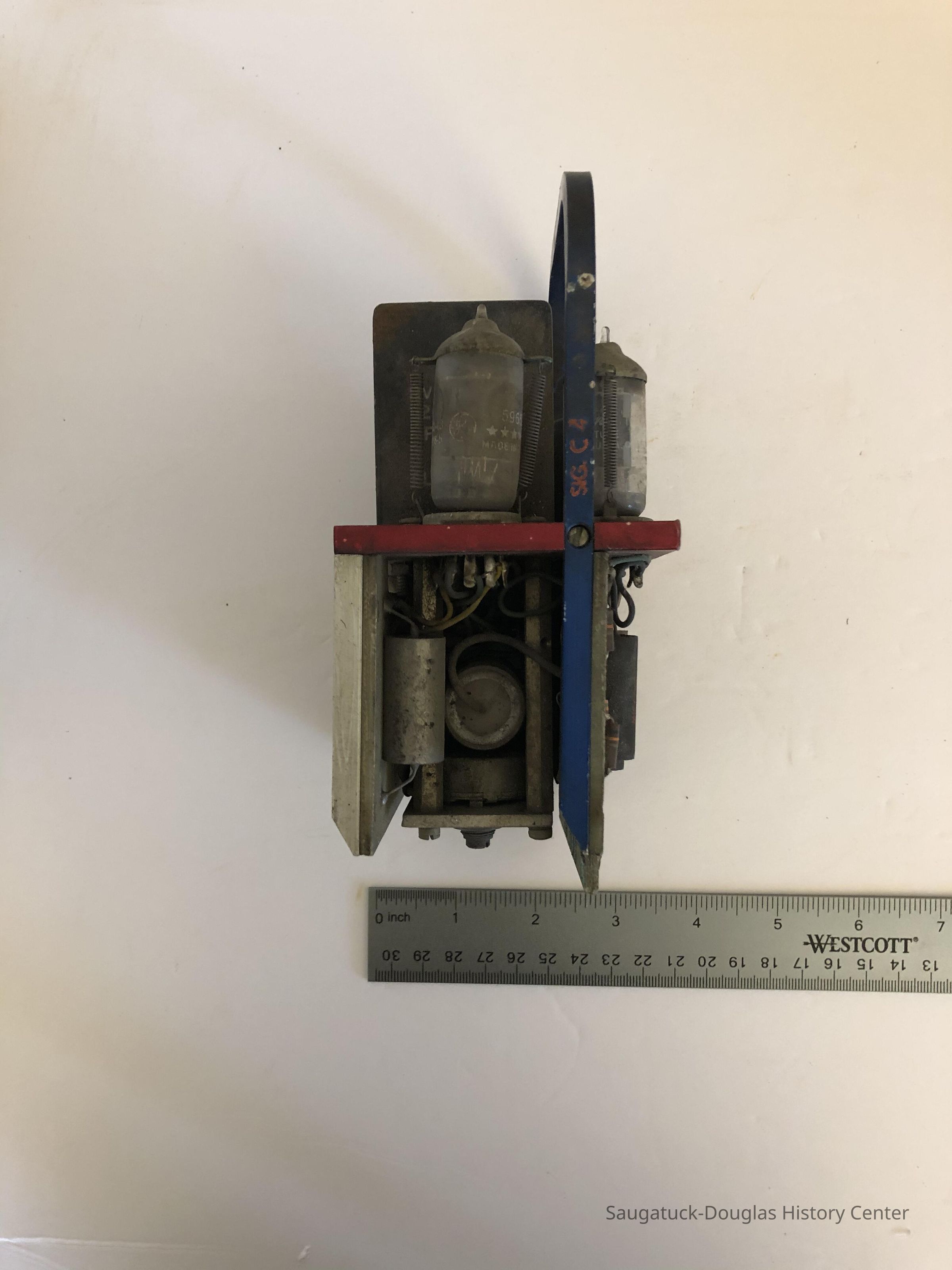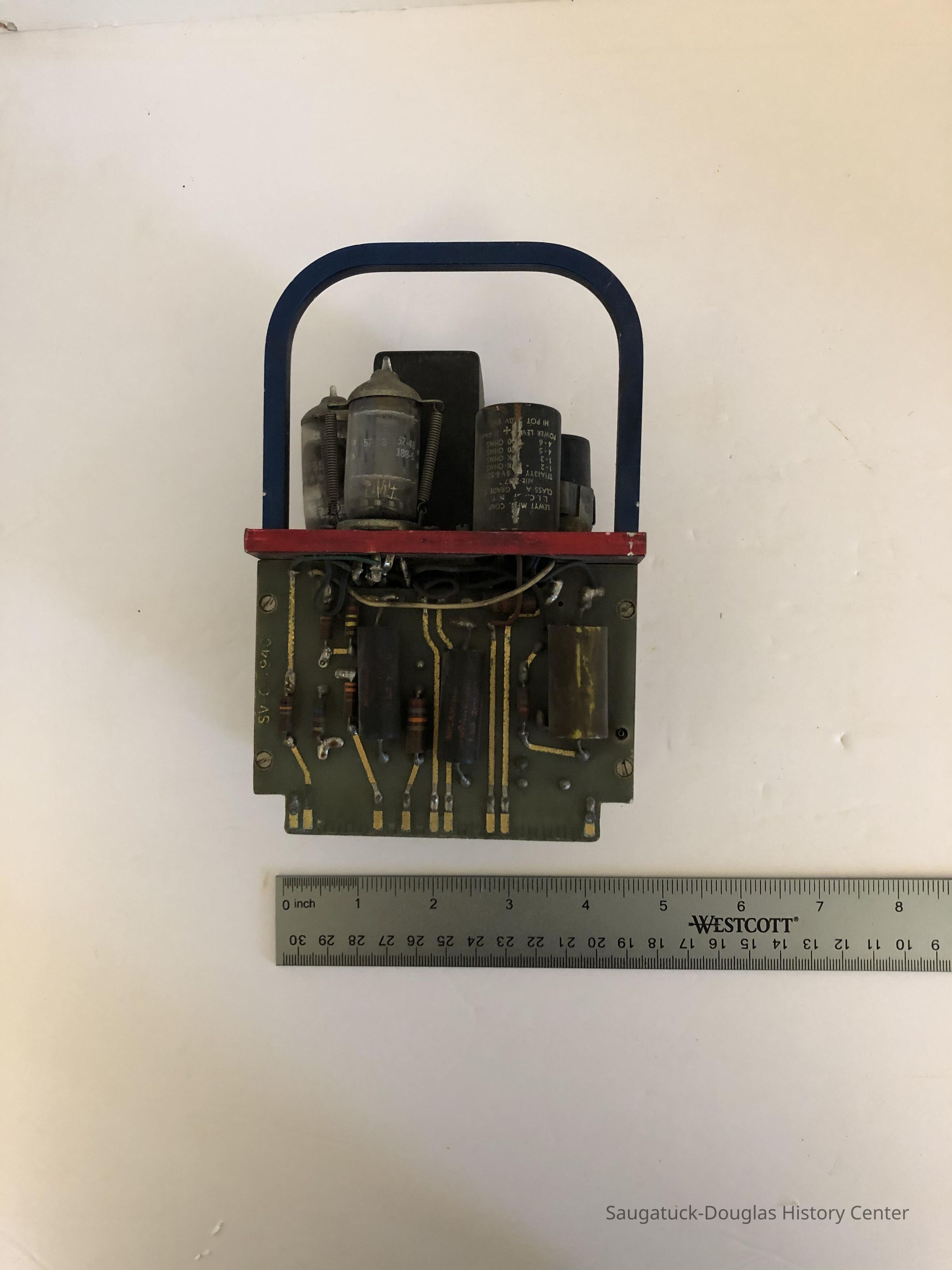 The module is a part of the FST-1 Coordinate Data Transmitter that sent the radar data from the Mt. Baldhead Gap Filler Radar Station down phone lines to the Fort Custer Direction Center in Battle Creek. The module was part of the first radar digital signal processing unit and first modem used in an actual application. From the radar cabinet panel from the SDHC Cold War/Hot Towns exhibit (2017-18): "This FST-1 power supply cabinet was removed from the Mt. Baldhead Gap Filler Radar Annex in the 1980s. It includes components from the AN/FST-1 Coordinate Data Transmitter. The FST-1 sorted radar data to distinguish legitimate targets and transmitted the radar data down telephone lines in the first-ever use of a modem outside a research environment. The heart of the AN/FST-1 was a RCA 6499 Radechon barrier grid tube, a state-of-the-art memory device which, like the modem, was made available mere months before deployment in the FST-1."