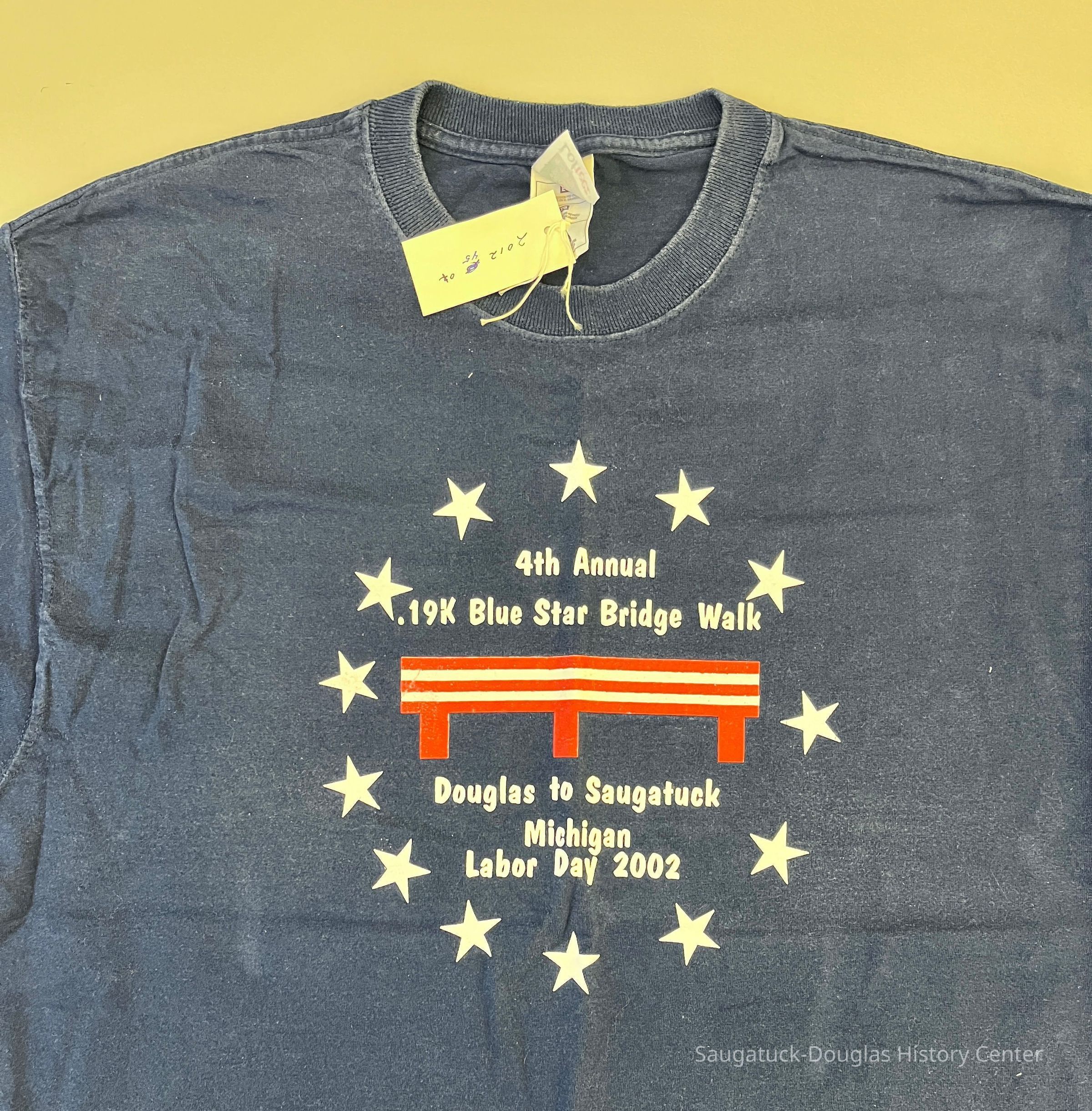 Blue t-shirt printed with 4th Annual .19K Blue Star Bridge Walk - Douglas to Saugatuck Michigan Labor Day 2002