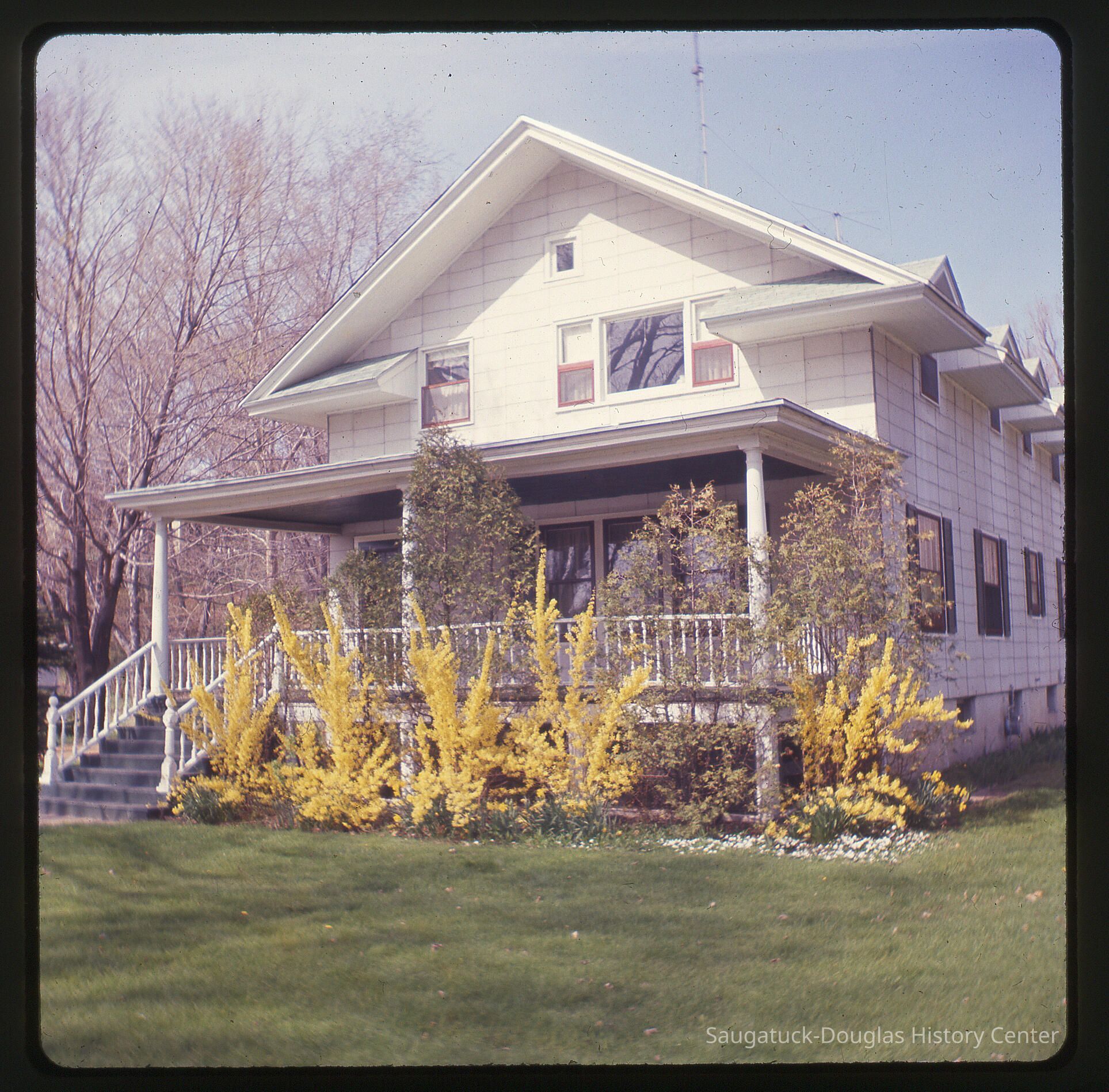 Seven slides of the Frank Sewers home at 790 Lake Street in Saugatuck. The three winter scenes are likely from the big snow of 1962. Two additional slides of vases of cut flowers photographed in front to the house are not shown here.